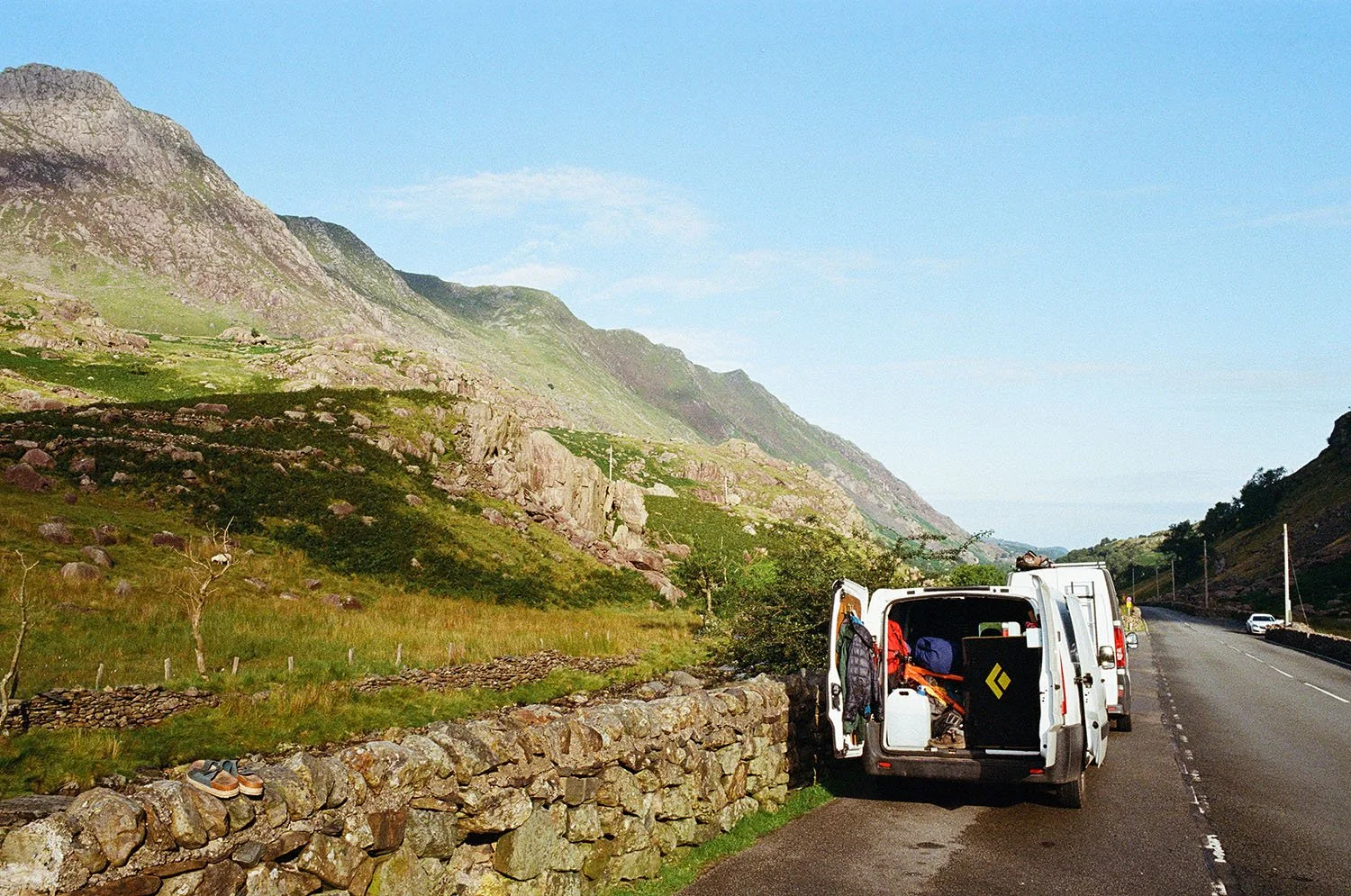 For the next two weeks the four of us followed the plan meandering south, picking out each evening which crag we fancied for the next day. Theresa and I survived quite well in the little van together, though when one wanted to make breakfast in the morning, both had to be keen, everyone in bed or no one in bed.